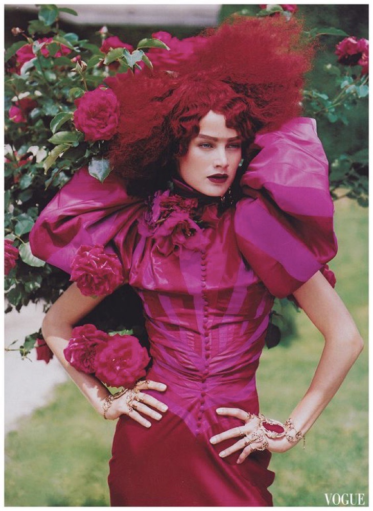 Carolyn Murphy wears John Galliano for Dior in the October 1997 issue of Vogue. Photographed by Peter Lindbergh, she wears matching Christian Dior hand jewellery.