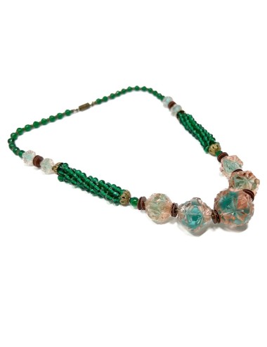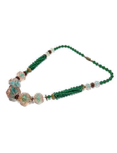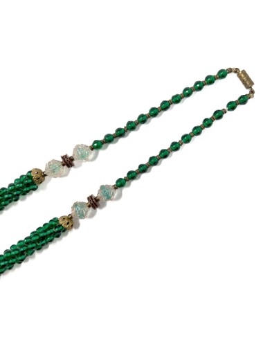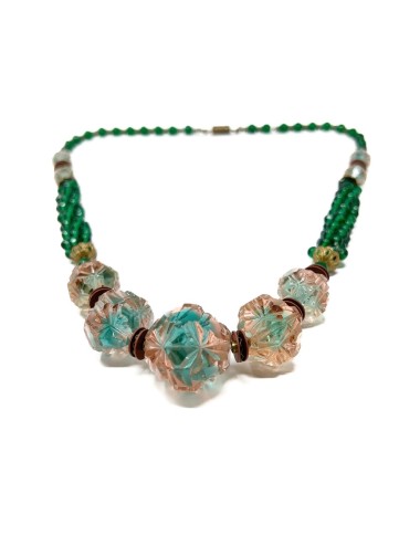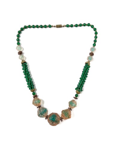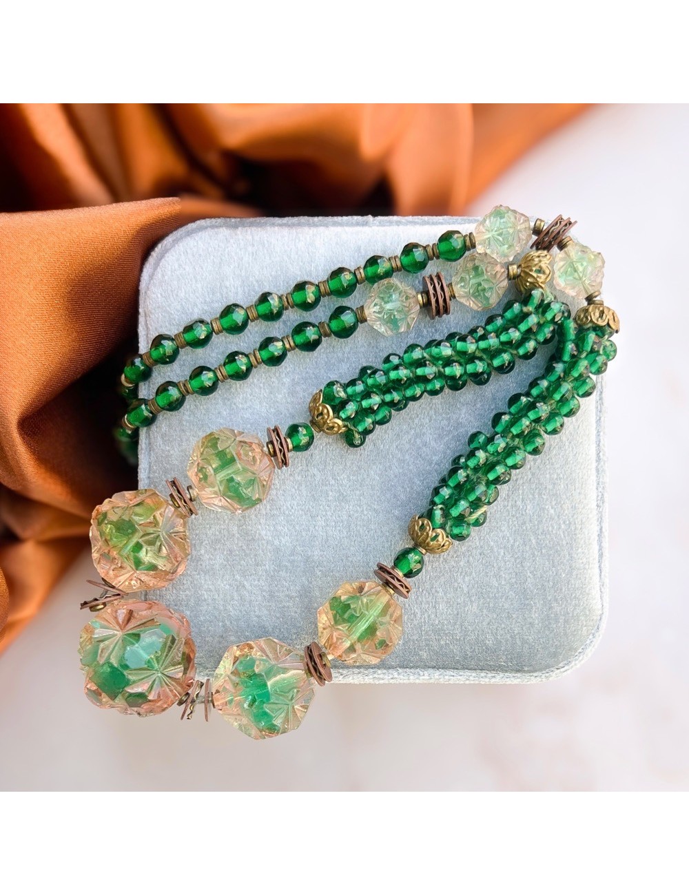 Art Deco 1930s Uranium and Emerald Glass Bead Vintage Necklace