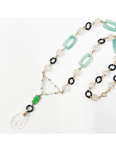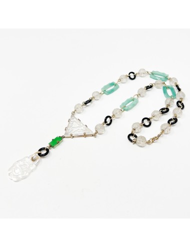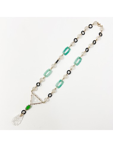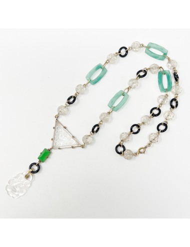 Art Deco 1920s Czechoslovakian Carved, Green and Black Glass Vintage Pendant Necklace