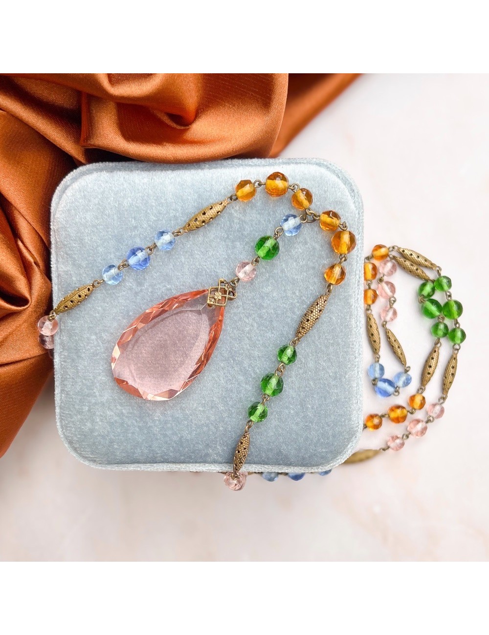 Art Deco 1920s Czechoslovakian Multi-Coloured Glass Vintage Pendant Necklace