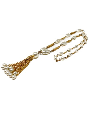 This stylish 1960s necklace evokes the much sought after faux pearl sautoirs created by the house of Chanel.