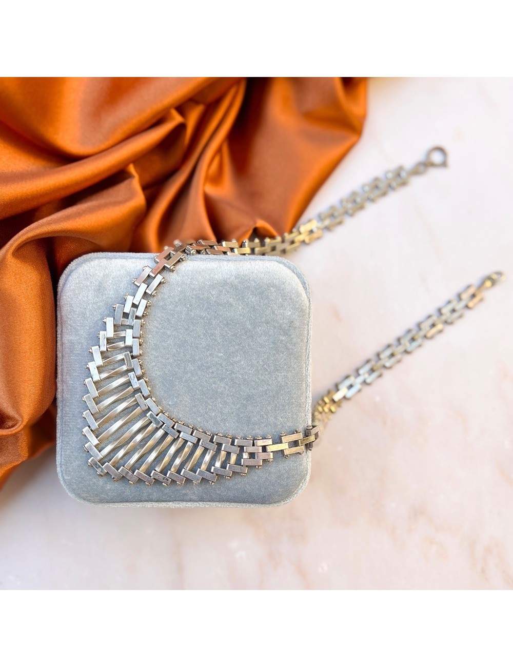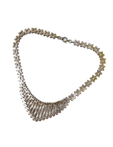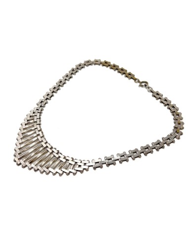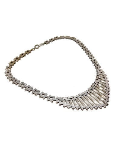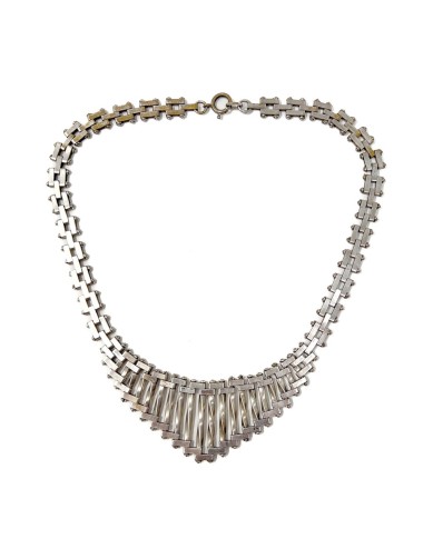 This stylish necklace dates from the 1930s. It evokes the Machine Age aesthetic of the era and was most likely created by Jakob Bengel.